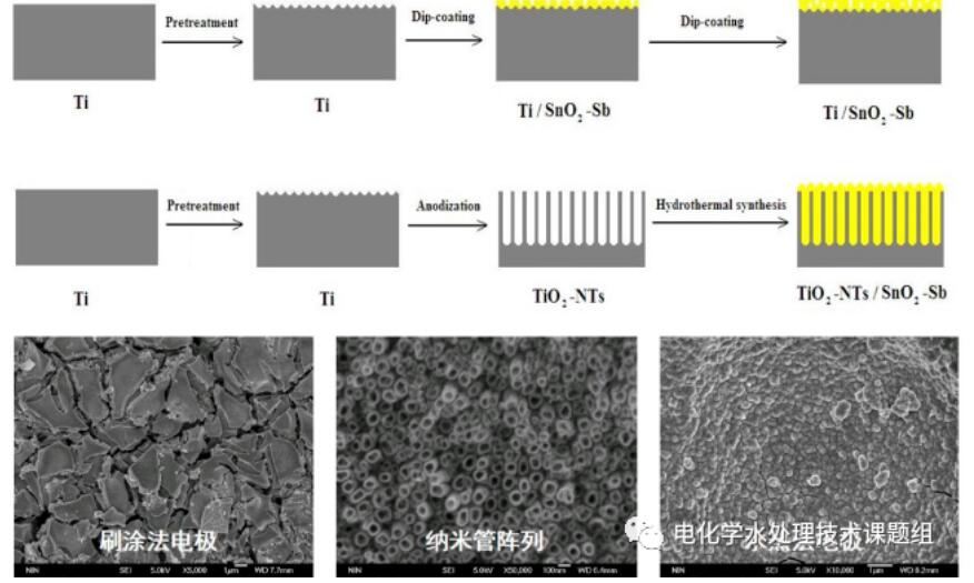 如前所述,考量一种电极材料的实用性应该从价格、制备难易程度、稳定性、催化性等多个维度综合考虑。钛基体金属氧化物电极在上述四个方面所表现出来的综合性能无疑是很优的,并因此受到极大的关注与研究,其中钛基体电极的功能化改性成为本领域的研究热点之一。