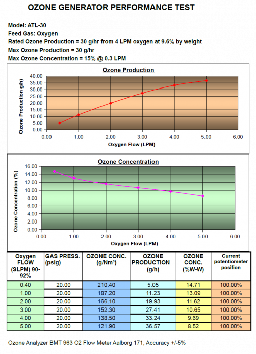 36.5克/小时 @ 8.5% (重量)从5.0 LPM O2流量